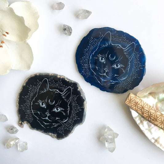 Sold Out"Midnight Familiar" Cat Agate Slice
