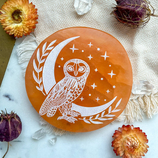 "Moon Cat" Selenite Charging Plate Spooky Decor