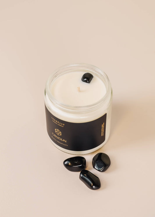 4oz Clear Crystal Candles - Obsidian - Block Negativity