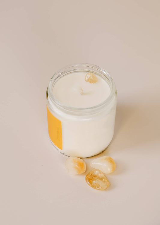 4oz Clear Crystal Candles - Yellow Jasper - Happiness