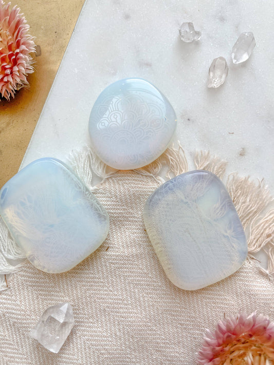 Etched Selenite Palmstone "Mystic Luna Moth"