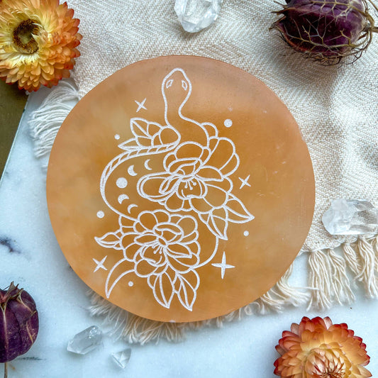 "Butterfly" Peach Selenite Crystal Charging Plate