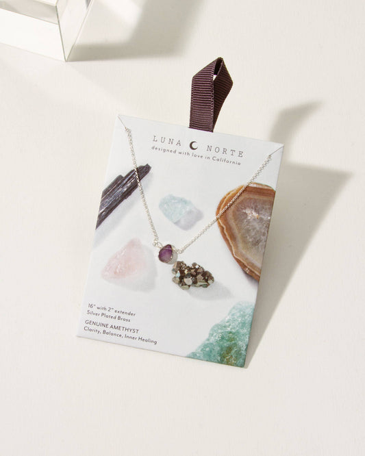 Silver Delicate Gemstone Necklace- Amethyst