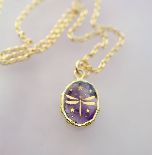 Gemstone Symbol Necklace: Amethyst Dragonfly (18 inches)