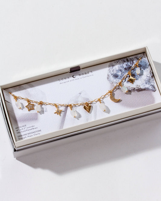 Gemstone Symbol Necklace: Opalite Moon + Stars (16 inches)
