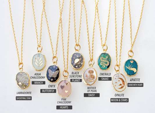 Celestial Gemstone Pendant Necklace - Apatite Stars