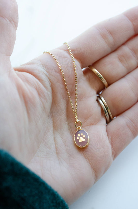 Paw Print Gemstone Necklace - Pink Opal (16 inches)