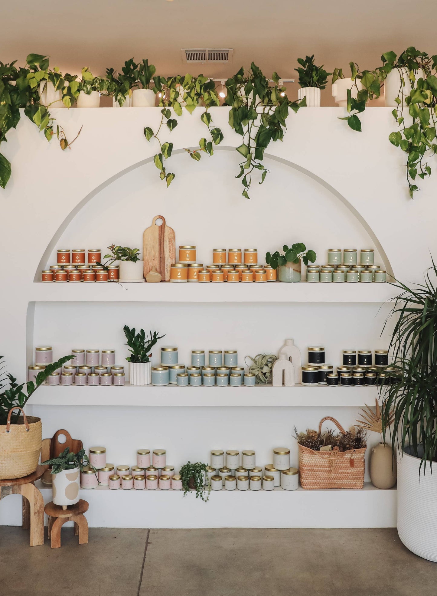Each candle is hand-poured in our San Diego studio. Made from 100% American-grown soy wax, free of carcinogens, hazardous fragrance chemicals, Parabens, and Phthalates.