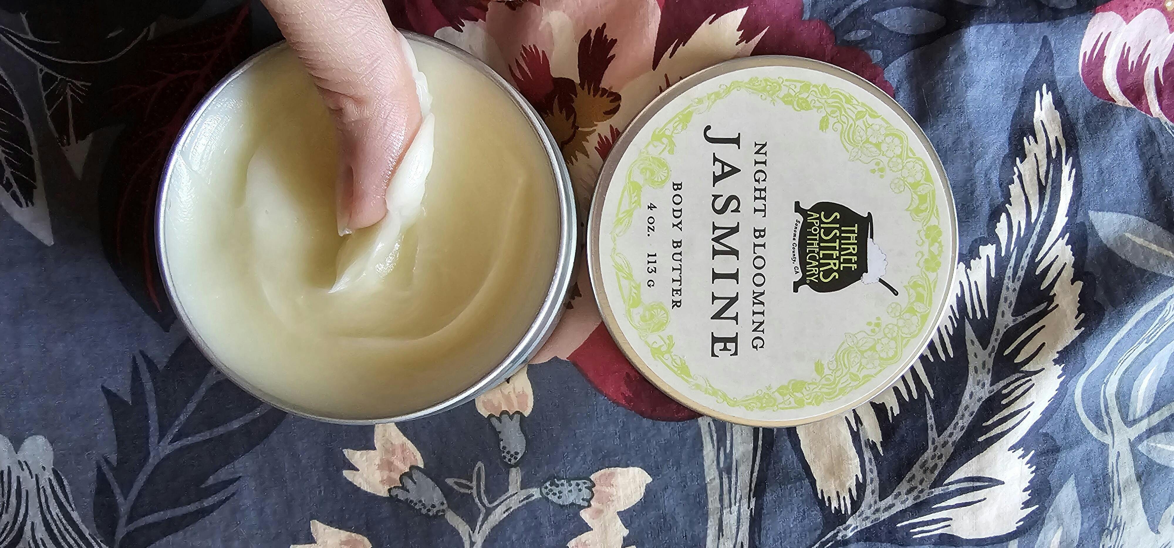 Deeply fragrant Jasmine Essential Oils, Beeswax, Coconut Oil, Botanicals and Vitamin E combine with Shea, Avocado and Cocoa butters to gently pamper the skin. Creamy and rich, but never greasy this all-natural, body butter is ultra-light and instantly absorbed to restore and soften skin