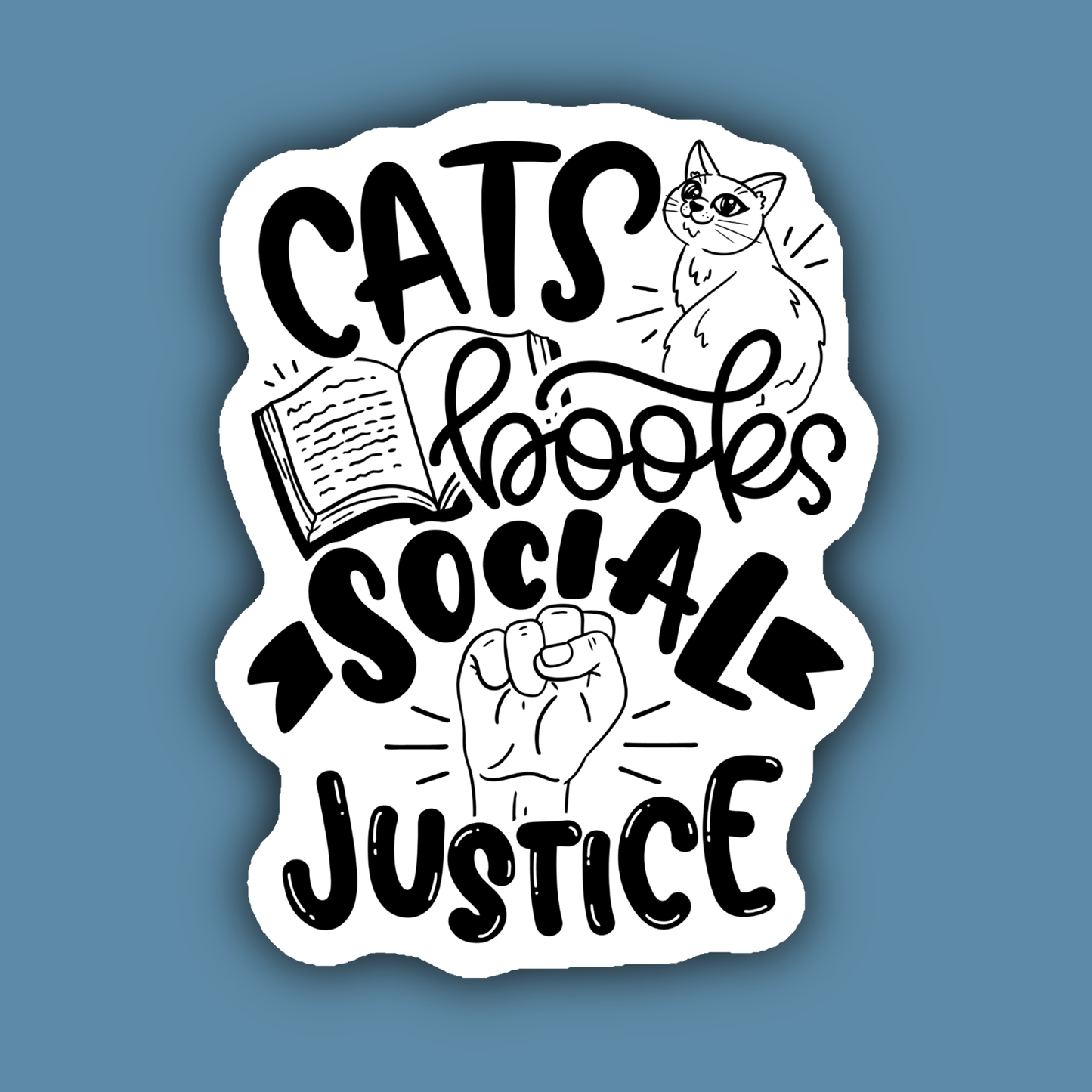 Cats, Books, and Social Justice Sticker