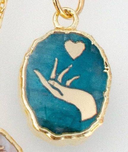 Gemstone Symbol Necklace: Apatite Hand + Heart (18 inches)
