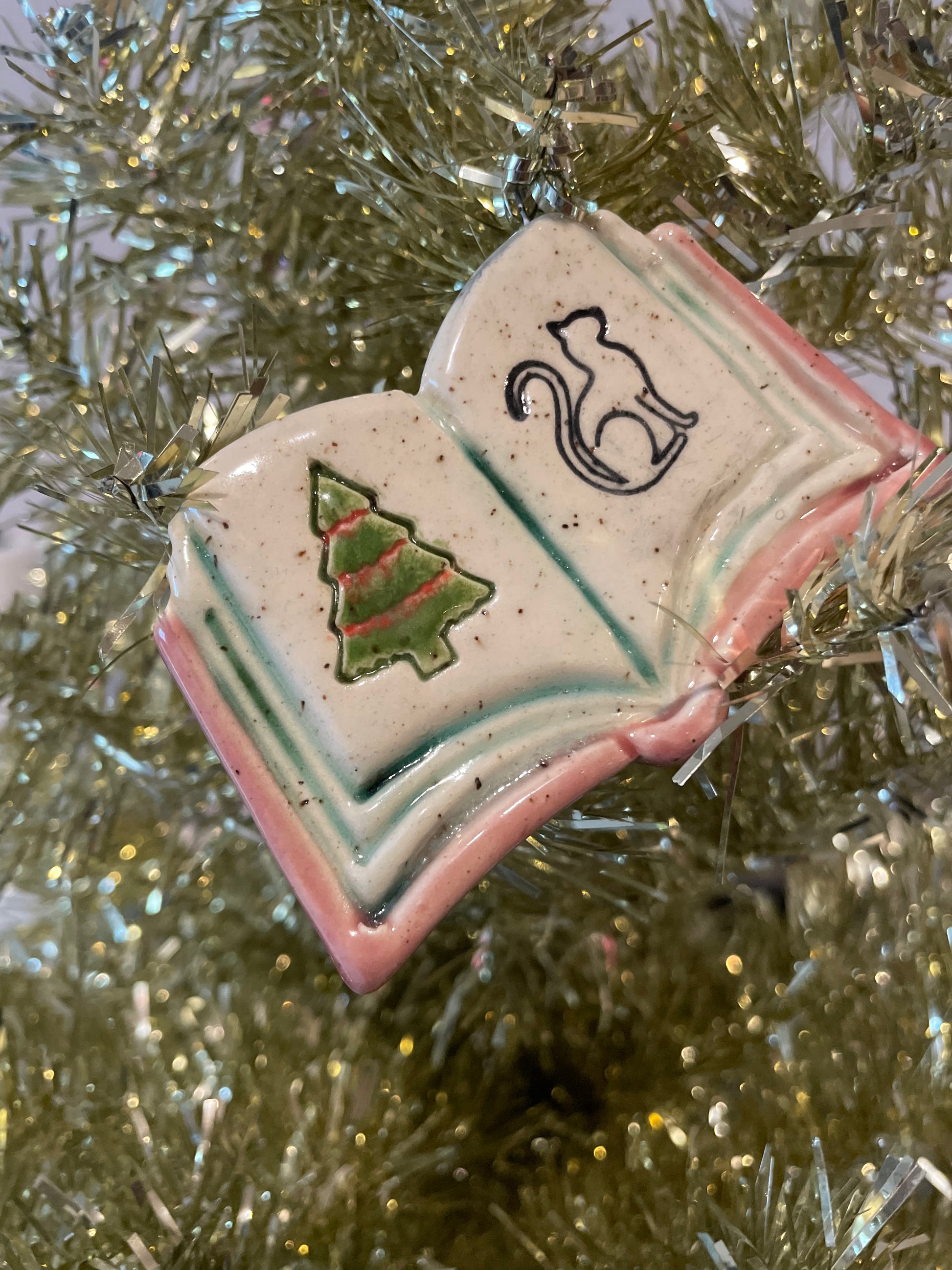 ðâš Handmade Ceramic Christmas Ornament: "Black Cat Fables" Book âšð