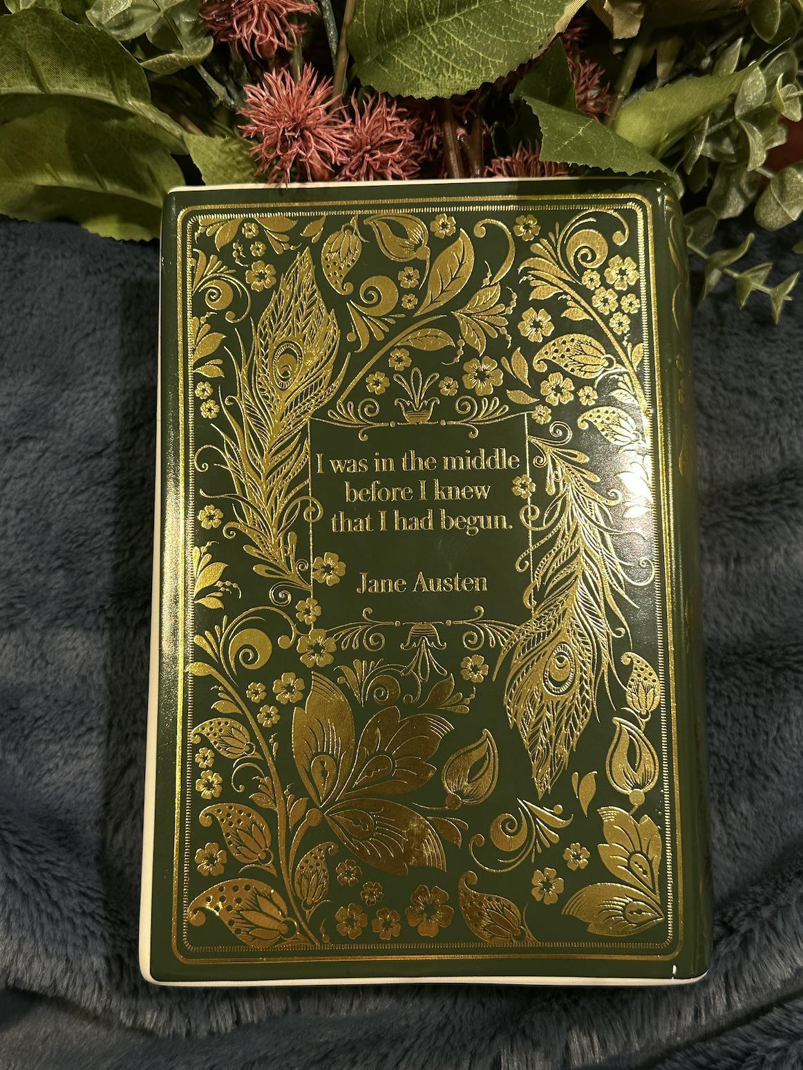 Our large ceramic book vase is the perfect piece for any book lover's space. Designed to mimic a hardcover book, the vase features sculpted pages, with a wide top opening for flowers, desk supplies, utensils, and more. The cover features art inspired by Jane Austen's beloved novel, Pride and Prejudice to adorn your space with bookish charm.